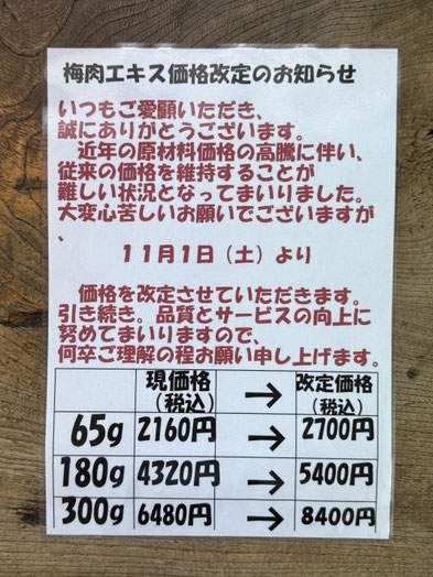 梅肉エキス(瓶詰めタイプ)の価格を改定させていただきます。